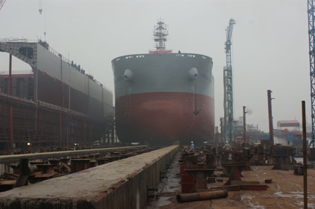 2014年3月29日,我司為日新建造的64000噸散貨輪(HT64-127)在韓通1號船臺成功下水,該船入BV船級社。周義慶副總經(jīng)理、船東代表及船級社代表參加該儀式。