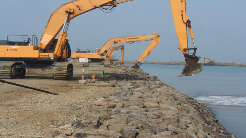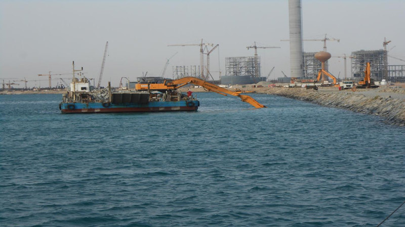 由韓通、海洋和海川聯合承接的現代重工業沙特SSPP火電站防坡堤項目于今年6月份正式實施。國內已派遣50多名施工人員在現場進行施工,同時現場有20名外籍勞工一起參與該項目。