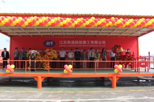我司為寶源建造的64000噸散貨輪(HT64-162)達到了交船狀態,2014年9月25日在我司碼頭舉行了隆重的交船儀式,該船入DNV.GL。交船儀式開始前船東船檢代表等參觀了該船,并給予很高的評價。2014年9月26日該船駛離韓通碼頭,至此,該船提前52天成功交付。