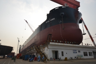 2014年10月26日,我司為挪威船東SPAR SHIP 建造的64000噸散貨輪(HT64-158)在韓通2號船臺成功下水,該船入DNV·GL船級社。周義慶副總經理、船東代表及船級社代表參加該儀式。