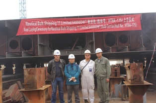 我司為CONTI建造的64000DWT散貨輪(船體號(hào):HT64-175)于2014年11月10日在我司2號(hào)船臺(tái)舉行了上臺(tái)儀式,該船入LR船級(jí)社。衛(wèi)軍總經(jīng)理助理及船東、船檢參加該儀式。