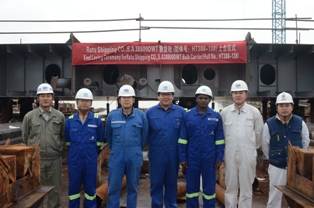我司為日本船東NISSHIN建造的38800DWT散貨輪(船體號:HT388-138)于2014年11月25日在我司3號船臺舉行了上臺儀式,該船入BV船級社。董繼紅總經理助理及船東、船檢參加該儀式。