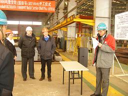 元月21日,為德國OLTMANN航運公司建造的首艘57000噸散貨輪在韓通重工的切割中心舉行了開工儀式,參加的代表有船東Mr. Jan OLTMANN 夫婦,貿易公司弘業集團總裁錢女士、船舶部總經理季轟,LR船級社康宏先生。在儀式上,公司執行董事武亦文先生、Mr. Jan Oltmann以及錢女士分別代表船廠、船東和貿易公司發言。最后在友好、和諧的氣氛中,四方簽訂了開工文件。此艘船是韓通重工在2008年開工建造的第二艘57000噸散貨輪。