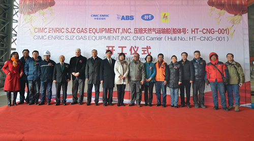 我司與CIMC ENRIC SJZ GAS船東簽訂的全球首艘CNG(壓縮天然氣)運輸船于今日成功舉行開工點火儀式。船東、船檢及我司高層參加該儀式。
