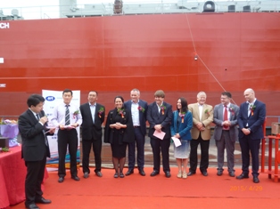 我司為船東Lighthouse建造的64000DWT散貨輪(船體號:HT64-131)于2015年4月29日舉行了交船儀式,該船入DNV·GL船級社。常務副總經理周義慶及船東、船檢參加該儀式。