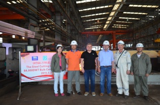 2015年5月29日,我司為CONTI建造的64000噸散貨輪(船體號:HT64-179)開工儀式在韓通船體車間順利舉行,該船入LR船級社。朱亮總經(jīng)理助理及船東、船檢代表參加該儀式。