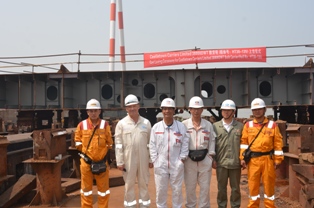我司為德國船東PD 建造的38800DWT散貨輪(船體號:HT388-135)于2015年6月1日在我司1號船臺舉行了上臺儀式,該船入LR船級社。總經理助理朱亮及船東、船檢參加該儀式。