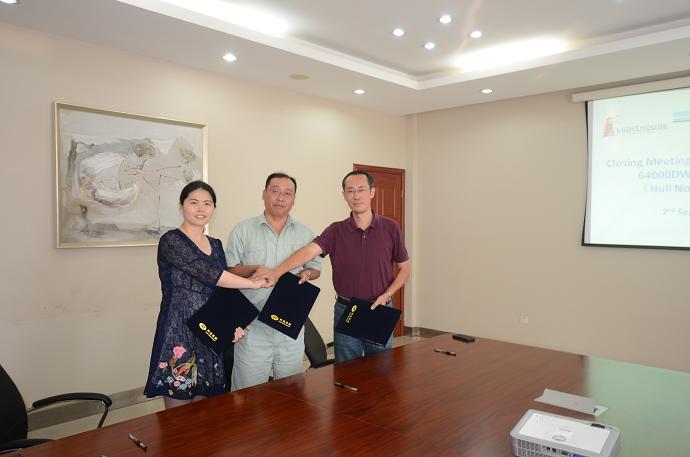 我司為L(zhǎng)ight House船東建造的64000噸系列散貨輪(船體號(hào):HT64-132)達(dá)到了交船狀態(tài),2015年9月5日在韓通舉行交船簽字儀式,至此該船成功交船,入DNV•GL船級(jí)社。