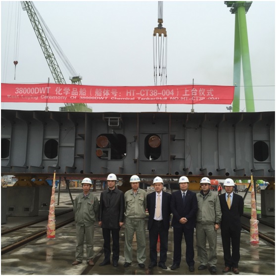 2015年11月19日,韓通為中化船務建造的38000噸不銹鋼化學品船(船體號:HT-CT38-004)上臺儀式順利舉行,該船入LR 和CCS船級社。公司領導、船東、船級社代表參加該儀式。