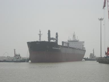 經過韓通船舶重工有限公司的所有員工的努力,首制57000噸散貨輪在圓滿完成各項指標和測試后于5月29日上午10:00停靠在韓通公司碼頭.武亦文總經理在碼頭迎接試航人員一行.該船于2007年6月6日開工,2008年1月23日下水,并將在6月中旬交船,此船為SDARI設計的系列船的第一條船,入BV級,船東為新加坡大新公司.