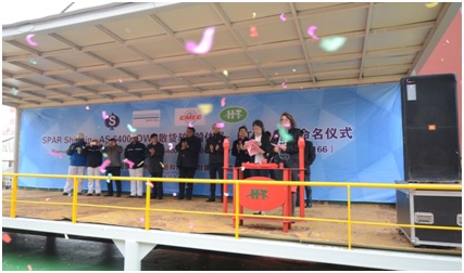 2016年3月9日,我司為挪威船東SPAR建造的64000DWT散貨輪(船體號:HT64-166)舉行命名儀式,該船入DNV船級社。公司領導、船東、船檢和貿易公司參加該儀式。