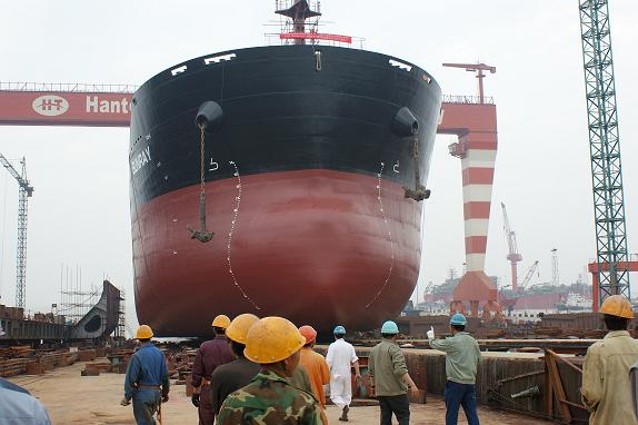 7月10日,江蘇韓通船舶重工有限公司為希臘船東建造的57000噸散貨輪在1號(hào)船臺(tái)2號(hào)滑道順利下水;此為該船東建造系列船中的首制船,代理公司為安徽技術(shù)進(jìn)出口有限公司,入BV級(jí)。該船是韓通重工2008年下水的第三條船。