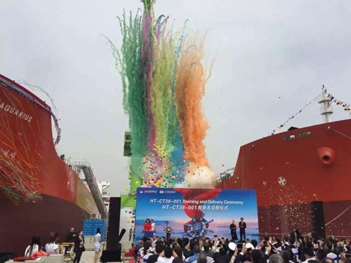 首制38000噸不銹鋼化學(xué)品船(HT-CT38-001)順利舉行命名&交船儀式