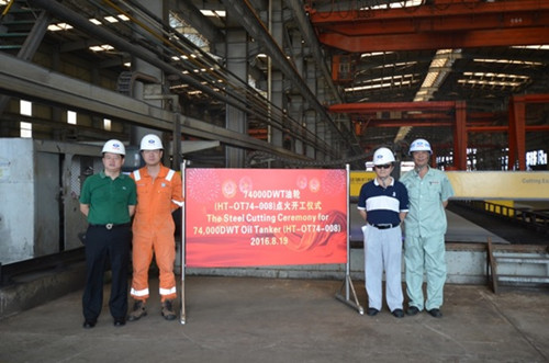 2016年8月19日,韓通為德國船東建造的74000噸油輪(船體號:HT-OT74-008)開工儀式順利舉行,該船入LR 船級社。公司領導、船東、船級社代表參加該儀式。
