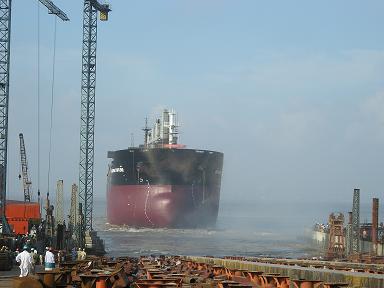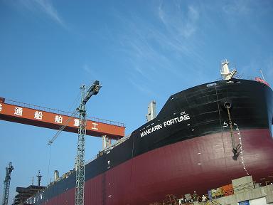 8月7日,第四條57000噸散貨輪在韓通船舶重工有限公司2#船臺順利下水,該船為新加坡大新船東建造,也是該船東的第三條船.