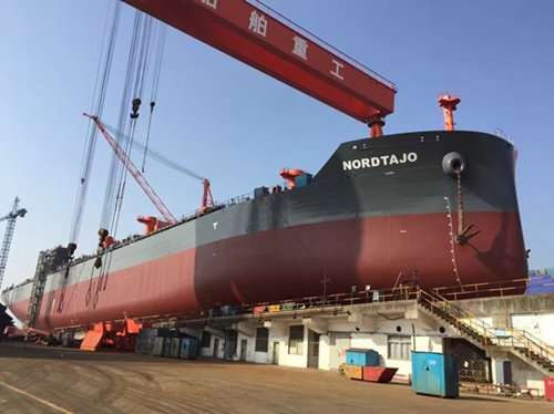 2016年11月11日,我司為Nord船東建造的38800噸散貨輪(船體號:HT38-193)順利下水。該船入LR船級社。公司領導、船東、船檢代表參加該下水儀式。