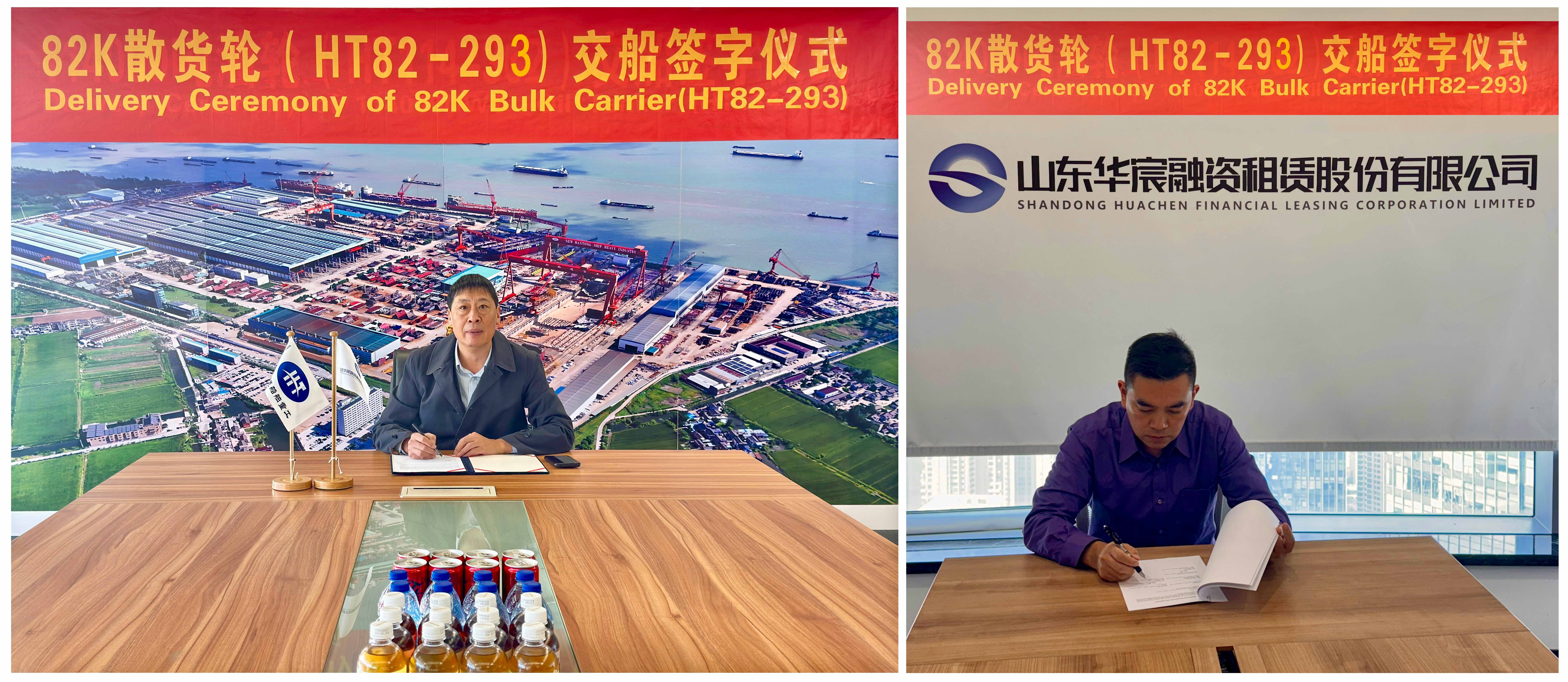 2024年12月9日,韓通集團為為華宸租賃打造的第三艘82000噸散貨船“山東鑫福”(船體編號:...